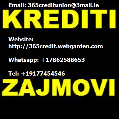 Nudimo Pozajmice za pravna i fizicka lica. Pozajmice od 2.000e do 90.000.000.e na 3% kamatnu stopu, Za vece pozajmice obavezan zalog. Email: 365creditunion@3mail.ie Whatsapp: +17862588653 Tel: +19177454546 |